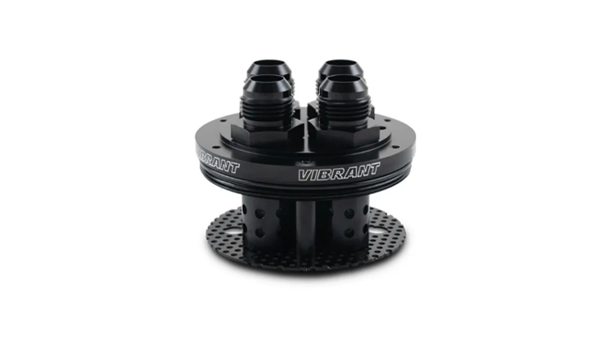 Catch Can Lid - 4-Port - 12 AN Ports - Fittings / Filter Barrels Included - Aluminum - Black Anodized - Each