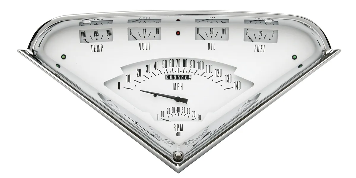 Gauge Kit - Tach Force - Analog - Water Temperature / Voltmeter / Oil Pressure / Fuel Pressure / Tachometer / Speedometer - White / Chrome Panel - GM Fullsize Truck 1955-59 - Kit