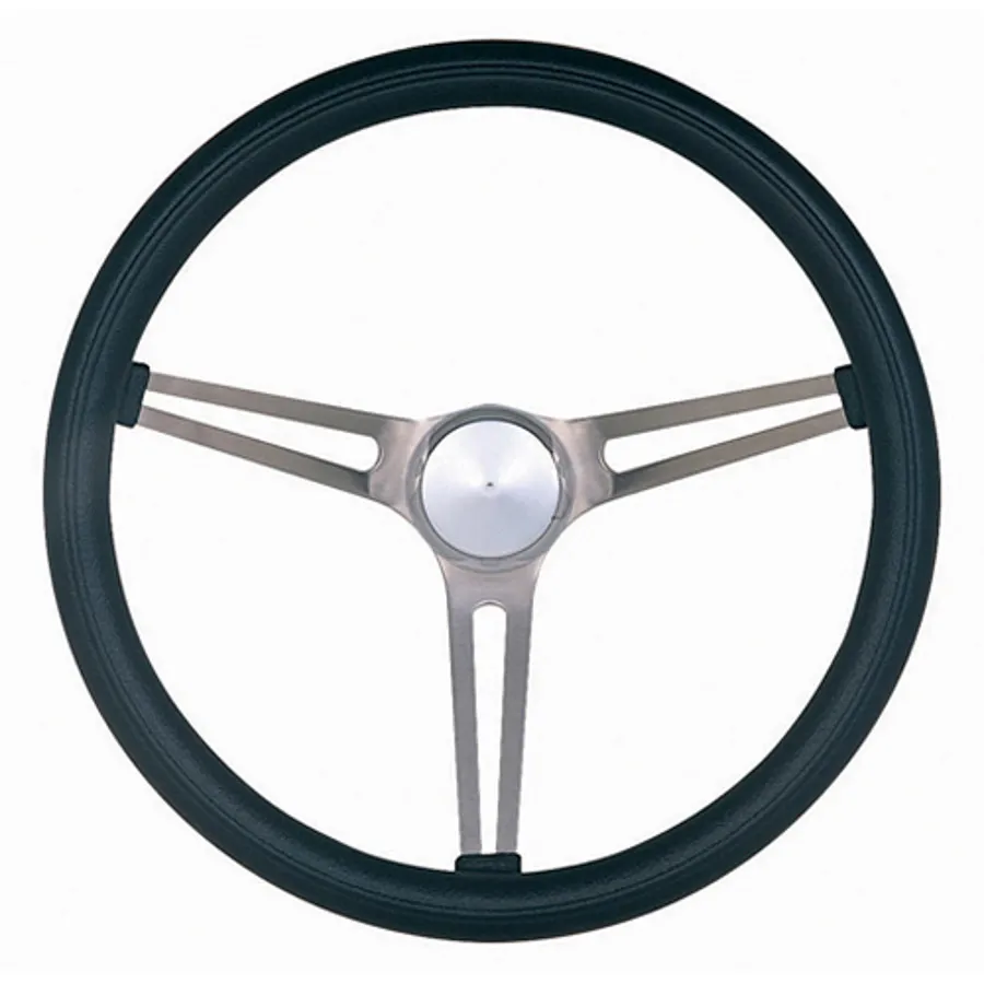 Classic Series Nostalgia Steering Wheel; 15 in. Diameter; 4 1/8 in. Dish; Black Foam Grip; Brushed Stainless Steel 3-Spoke Design;