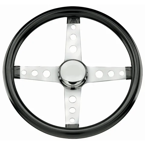 Classic Series Cruising Steering Wheel; 13.5 in. Diameter; 1 3/4 in. Shallow Dish; Black Gloss Vinyl Cushion Grip; Chrome 4-Spoke Design;