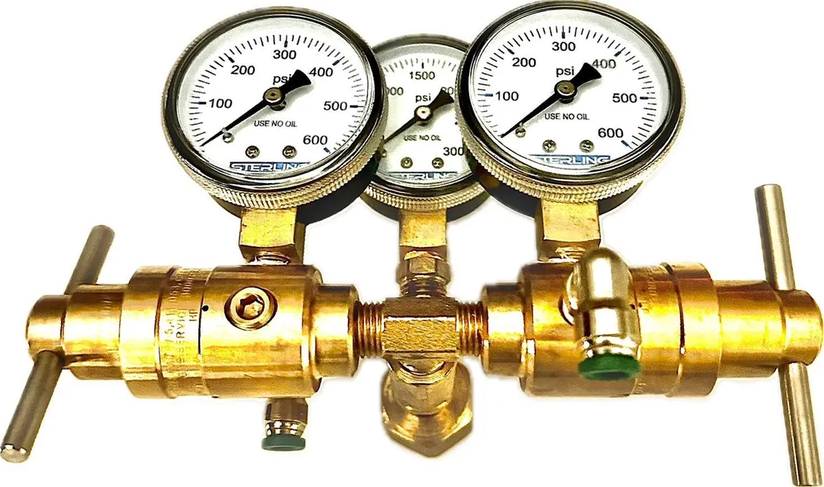 CO2 Pressure Regulator - Triple Gauge - Dual Regulator - 0-150 psi / 0-400 psi Adjustable - 1/8 in NPT Outlet - Brass - Natural - Each