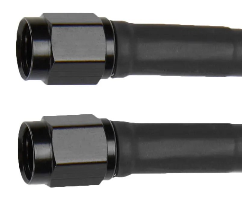 AN Hose Assembly - 18 in Long - 2 AN Hose - 3 AN Straight Female to 3 AN Straight Female - Braided Stainless - Black Vinyl Coated - PTFE Lined - Each