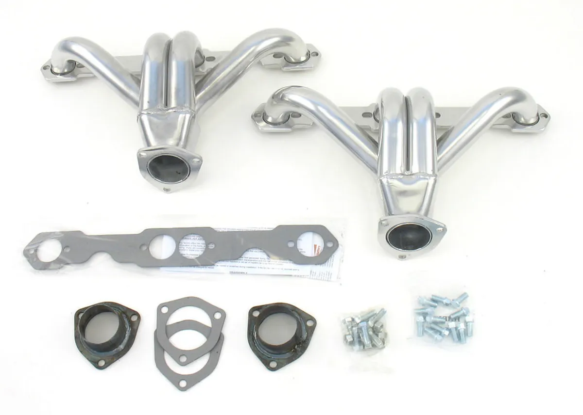 Headers - Tight Tuck - Short - 1.625 in Primary - 2.5 in Collector - Gaskets / Hardware / Reducers Included - Steel - Silver Ceramic - Small Block Chevy - Universal - Pair
