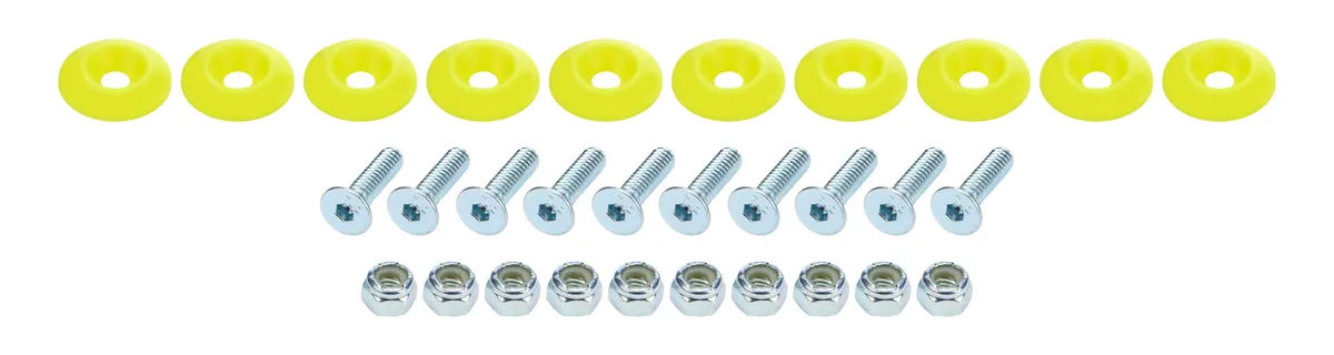 Body Bolt Kit - 1/4-20 in Thread - 1 in Long - Allen Head - Bolts / Countersunk Washers / Lock Nuts Included - Plastic / Steel - Fluorescent Yellow / Zinc Oxide - Set of 10