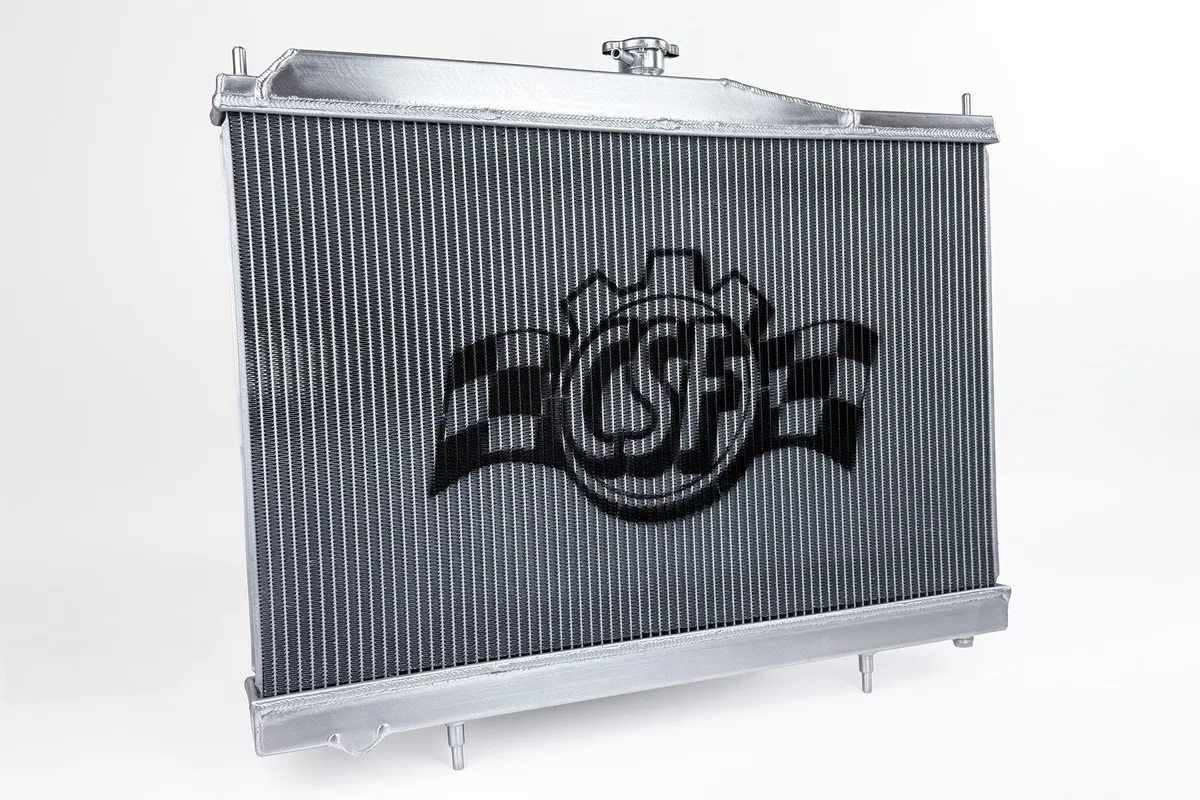 Click Here for the Full Press Release & Additional Product Details After the huge success of the CSF x TopRank Billet R32 ( CSF #7217/7217B ) & R33 ( CSF #7219/7219B ) Radiators, CSF received a lot of feedback from customers looking for a non-billet version. CSF is now pleased to announce the full line of High-Performance All-Aluminum Radiators for the R32, R33, and R34 Nissan Skylines. CSF has over 5 decades of experience manufacturing radiators. So when it comes to keeping your engine cool and your R33 Skyline running at its best, a CSF High-Performance All-Aluminum Radiator is the obvious choice. Designed to perform on the street or at the track, a performance radiator is a must-have for both high horsepower builds as well as race vehicles which need added cooling performance in motorsports environments. This radiator features a 2-Row core with CSF's exclusive B-Tube Technology: Unlike a regular oval shape "O" type radiator tube, CSF uses a specially engineered tube in the shape of a "B". These "B-tubes" are carefully formed and then brazed over the seam to seal. CSF is able to use thinner and lighter aluminum material (with better cooling efficiency) because this design is actually stronger than normal "O" shape tubes that are welded. The design (inlet in the middle of the tube that is seam brazed) increases the heat transfer surface area of the tubes by approximately 15% over regular tubes - producing the efficiency of two smaller tubes vs. one large tube within the same space criteria. With "B-tubes" you are able to get "dual liquid laminar flow". CSF also uses ultra efficient multi louvered fins that are carefully and precisely aligned to maximize airflow through each radiator core. Fin specifications are carefully measured and calculated for each application, and tested for maximum heat rejection efficiency in our wind-tunnel lab. The CSF R33 Skyline radiator is a true "Drop-in fit" design requiring no modifications to install. OE style brackets are all CNC machined and welded for the best durability possible. Inlet/Outlet connections are designed to match the OE connections so you can reuse OEM hoses or aftermarket. Trust the cooling experts at CSF for the best performing, highest-quality, and most reliable radiators. Product Details Design & Engineering The inline 6 motors found in the R33 Skylines are quite robust. Whether you have a basic 2.0L RB20 or legendary RB26, you probably don't worry too much about engine reliability. The GT-R's RB26 is well known for making big power and being reliable while doing it. However, power gains come at the cost of a lot of extra heat. While the factory radiator does a decent job keeping heat in check on stock setups, it's always better to have more protection, especially as you're making big power upgrades. CSF vs OEM The 2-Row 42mm core greatly not only increases the fluid capacity of the radiator, but also improves the cores ability to dissipate heat. CSF's Exclusive B-Tube Technology increases the heat transfer by approximately 15% over regular oval welded tubes. In addition, the super-efficient multi-louvered fins maximize airflow through the core for the best possible performance. More cooling rows also improve the overall efficiency of the radiator. More cooling tubes means more surface area for the coolant's heat to dissipate from. Feature R33 CSF R33 OEM Core Rows & Thickness 2