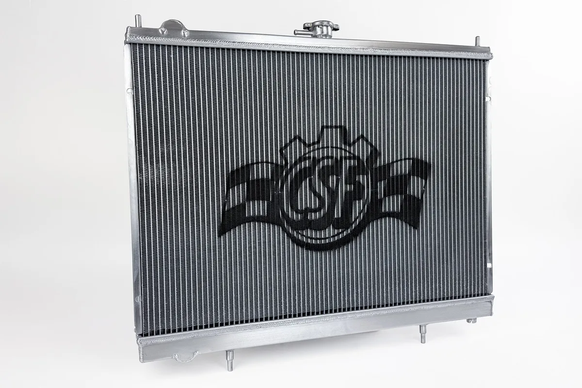 Click Here for the Full Press Release & Additional Product Details After the huge success of the CSF x TopRank Billet R32 ( CSF #7217/7217B ) & R33 ( CSF #7219/7219B ) Radiators, CSF received a lot of feedback from customers looking for a non-billet version. CSF is now pleased to announce the full line of High-Performance All-Aluminum Radiators for the R32, R33, and R34 Nissan Skylines. CSF has over 5 decades of experience manufacturing radiators. So when it comes to keeping your engine cool and your R34 Skyline running at its best, a CSF High-Performance All-Aluminum Radiator is the obvious choice. Designed to perform on the street or at the track, a performance radiator is a must-have for both high horsepower builds as well as race vehicles which need added cooling performance in motorsports environments. This radiator features a 2-Row core with CSF's exclusive B-Tube Technology: Unlike a regular oval shape "O" type radiator tube, CSF uses a specially engineered tube in the shape of a "B". These "B-tubes" are carefully formed and then brazed over the seam to seal. CSF is able to use thinner and lighter aluminum material (with better cooling efficiency) because this design is actually stronger than normal "O" shape tubes that are welded. The design (inlet in the middle of the tube that is seam brazed) increases the heat transfer surface area of the tubes by approximately 15% over regular tubes - producing the efficiency of two smaller tubes vs. one large tube within the same space criteria. With "B-tubes" you are able to get "dual liquid laminar flow". CSF also uses ultra efficient multi louvered fins that are carefully and precisely aligned to maximize airflow through each radiator core. Fin specifications are carefully measured and calculated for each application, and tested for maximum heat rejection efficiency in our wind-tunnel lab. The CSF R34 Skyline radiator is a true "Drop-in fit" design requiring no modifications to install. OE style brackets are all CNC machined and welded for the best durability possible. Inlet/Outlet connections are designed to match the OE connections so you can reuse OEM hoses or aftermarket. Trust the cooling experts at CSF for the best performing, highest-quality, and most reliable radiators. Product Details Design & Engineering The inline 6 motors found in the R34 Skylines are quite robust. Whether you have a basic 2.0L RB20 or legendary RB26, you probably don't worry too much about engine reliability. The GT-R's RB26 is well known for making big power and being reliable while doing it. However, power gains come at the cost of a lot of extra heat. While the factory radiator does a decent job keeping heat in check on stock setups, it's always better to have more protection, especially as you're making big power upgrades. CSF vs OEM The 2-Row 42mm core greatly not only increases the fluid capacity of the radiator, but also improves the cores ability to dissipate heat. CSF's Exclusive B-Tube Technology increases the heat transfer by approximately 15% over regular oval welded tubes. In addition, the super-efficient multi-louvered fins maximize airflow through the core for the best possible performance. More cooling rows also improve the overall efficiency of the radiator. More cooling tubes means more surface area for the coolant's heat to dissipate from. Feature R34 CSF R34 OEM Core Rows & Thickness 2