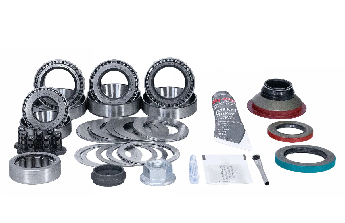 Revolution Gear and Axle Ring and Pinion Master Install Kits offer a comprehensive bill of material with all the components needed to overhaul your differential ring and pinion gear set. Our Master Install Kits contain the highest quality components from name brands like Timken bearings. Master Install Kits include differential pinion bearings and carrier bearings and are designed to meet the rigorous standards of both daily drivers and performance enthusiasts alike. Whether you're tackling tough terrain off-road or optimizing your vehicle for the track, Master Install Kits from Revolution Gear and Axle deliver unmatched durability and performance. Upgrading or replacing differential ring and pinions is a labor intensive process. Once you have selected the right gear set, choose a Master Install Kit from Revolution Gear and Axle for a smooth, trouble-free installation and years of reliable operation. Ring and Pinion Bearing Kit Specifications Compatibility: Fits Dana 35 IFS Ford 1990-97 Differential: Dana 35 Bearing Brand: Timken Pinion Bearings Included: Yes Carrier Bearings Included: Yes Axle Seals Included: No Ring Gear Bolts Included: Yes Pinion Shims Included: Yes Carrier Shims Included: Yes Pinion Seal Included: Yes Crush Sleeve Included: Yes Cover Gasket or Gasket Maker Silicone Included: Yes