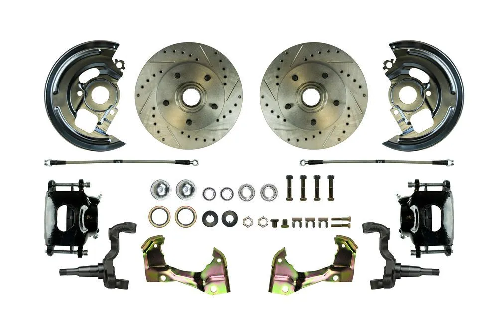 Brake System - Disc Conversion - Front - 1 Piston Caliper - 11.000 in Drilled / Slotted Rotors - Offset Hat - Iron - Black - GM A-Body 1964-72 - Kit