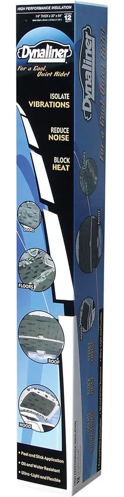 Heat and Sound Barrier - Dynaliner - 32 x 54 in Sheet - 0.250 in Thick - Self Adhesive Backing - Foam - Black - Each