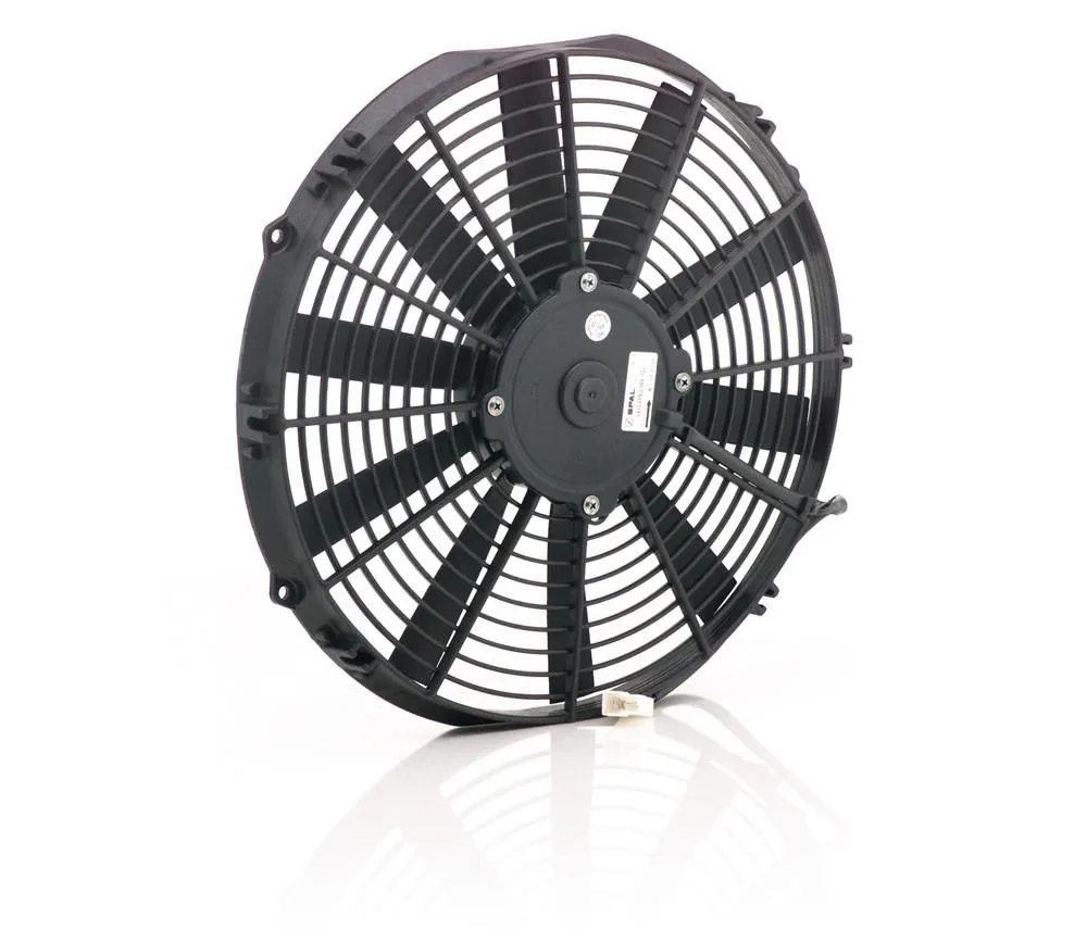 13 Inch Qualifier Series Electric Cooling Fan Fan Motor: Thin Line CFM: 920 Airflow Direction: Puller Max Current Draw: 6.8 Amps Blade Shape: Straight Fan Blades: Single Blade Diameter: 13 Inch Unit Width: 13 Inch Unit Height: 13 Inch Unit Depth: 2.05 Inch Fan Color: Euro Black Sold Individually SKU: 75081