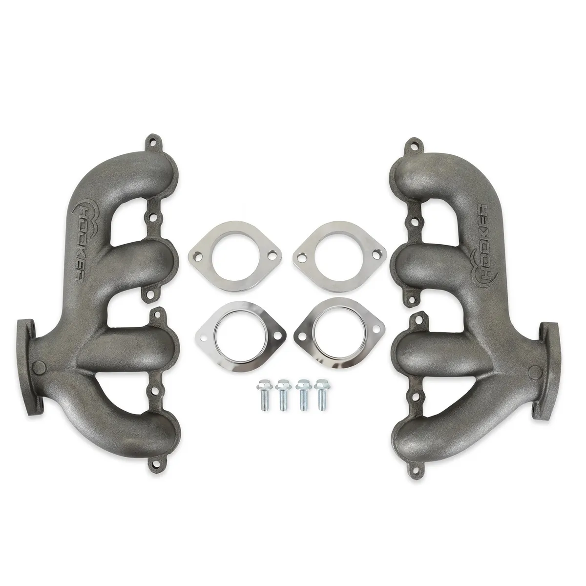 Exhaust Manifold - BlackHeart - Rear Dump - 2.5 in Outlet - Cast Iron - Natural - GM LS-Series - Pair