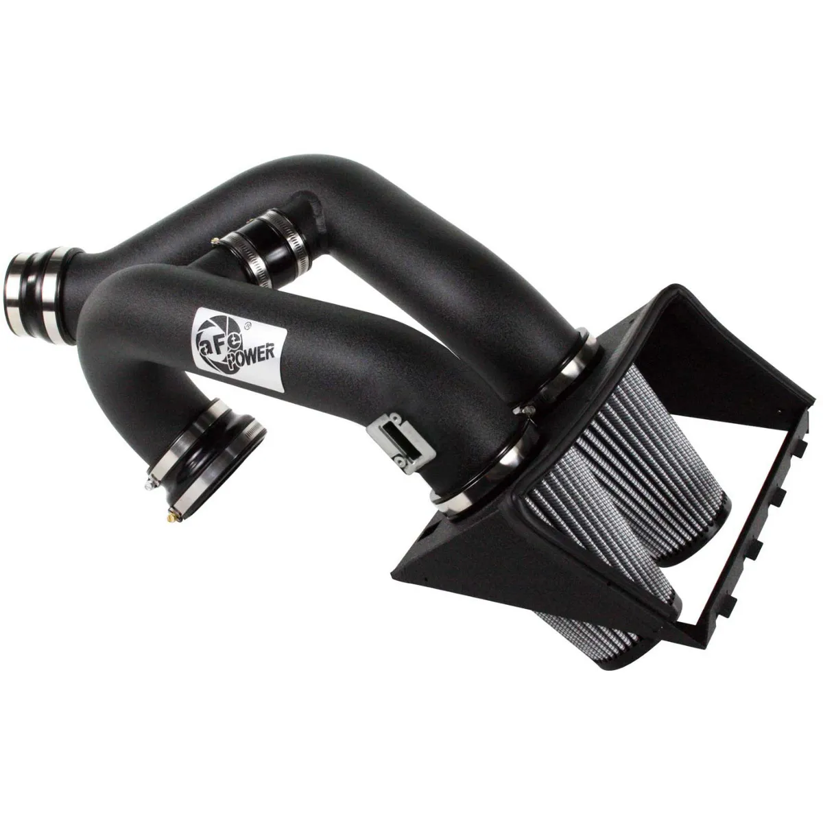 Magnum FORCE Stage-2 Dual 3-1/2" Cold Air Intake System w/Pro DRY S Filter Media aFe POWER's Stage-2 air intake system produces an astonishing 32 horsepower and 35lbs. x ft. torque and outflows the factory intake by 44%! Our equal length dual tube design with an H-pipe balance-tube increases intake air flow and velocity, while increasing horsepower and improving throttle response, allowing for quicker turbo spooling. The air intake is enclosed in a durable 16-gauge heat shield that utilizes the lower half of the factory air box that requires no assembly. Two 360-degree conical Pro DRY S air filters provide protection and flow for maximum performance.