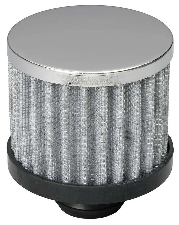 Breather - Push-In - Round - 1-1/4 in Hole - 3 in Tall - Filtered - Steel - Chrome - Each