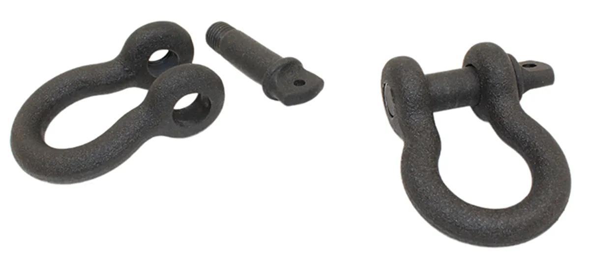 Black Powder Coated Universal application Sold as a pair. 7/8 in. threaded shackle pin Working load of 4.75 tons Enhance your off-roading experience and be prepared for any adventure with these versatile Red Powder Coated D-Rings. Suitable for universal applications, these D-Rings are designed to be your reliable trail companions, whether you're tackling rugged terrains, cruising through the mall, or venturing into the mud. Sold as a pair, these D-Rings offer double the utility, ensuring you're always well-equipped. The 7/8-inch threaded shackle pin is built to handle the toughest challenges, and with a substantial working load of 4.75 tons, you can confidently take on demanding situations. With their black powder coating, these D-Rings not only offer robust performance but also provide resistance against corrosion and the elements, ensuring long-lasting durability. Don't leave anything to chance
