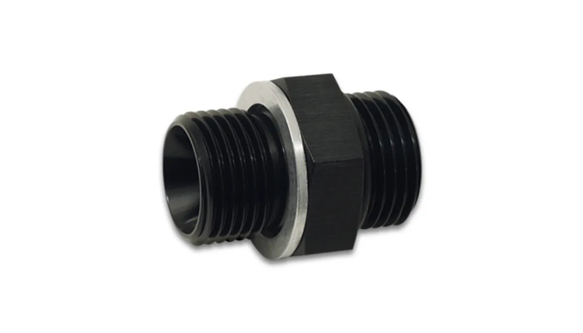 ORB to Metric Adapter Fitting; -6AN Male ORB; M14 x 1.5 Male Metric Size; 6061 Aluminum; Black Anodized;