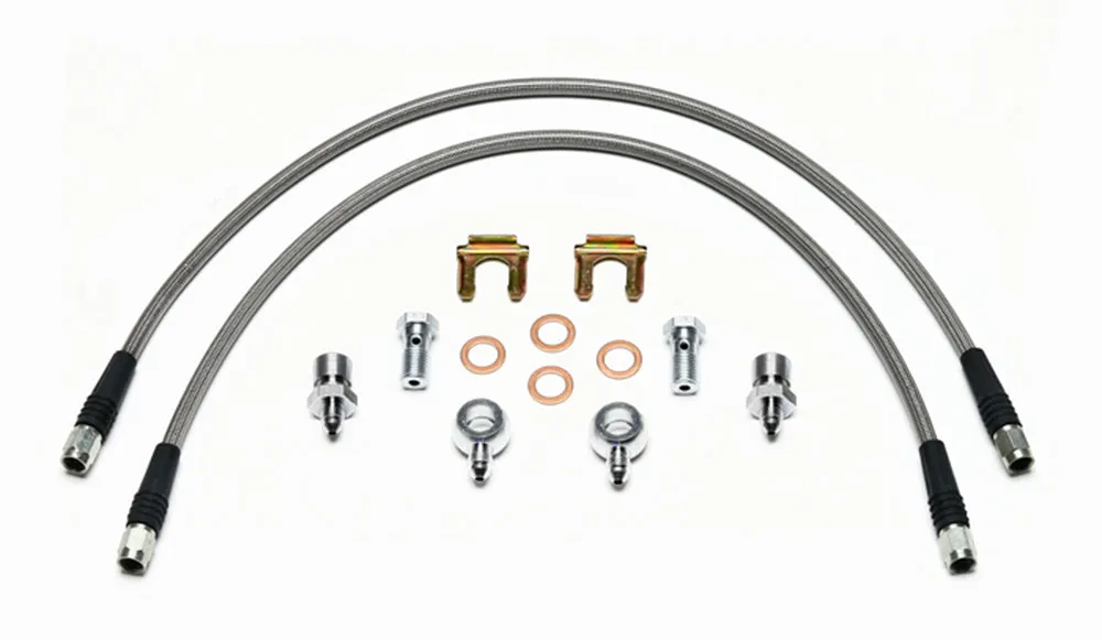 Wilwood's stainless steel braided Flexline Kits are manufactured to high quality standards and are available in various -3 styles. These premium grade flexline kits have been designed for application specific kits. They are available as an optional item when ordering your disc brake kits and include all the required fittings. Wilwood highly recommends using these top quality flexlines as replacement for the OE rubber hoses.
