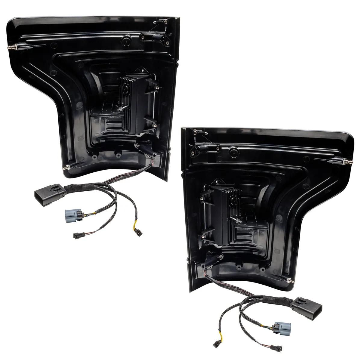 Some users may experience a slight increase in cross-traffic and blind spot signal sensitivity after installation. Technical Highlights â–¼ Fitment 2015–2020 Ford F-150 Lens Options Standard Red or Tinted Reverse Output Over 4,400 Lumens Turn Signal Dynamic Sequential LED Running Light Style Signature Perimeter Lighting Installation Plug-and-Play Adapters Included Factory LED Compatibility Yes Halogen Compatibility Yes, except noted exclusions BLIS / Cross-Traffic Sensors Supported on compatible models Customization Modular Paint-Match Housing Warranty 2 Years Standard vs. Tinted Options â–¼ Standard Red (Part #5913-504): A high-visibility option with a premium upgraded look that keeps a more traditional tail light appearance while maximizing visual contrast.