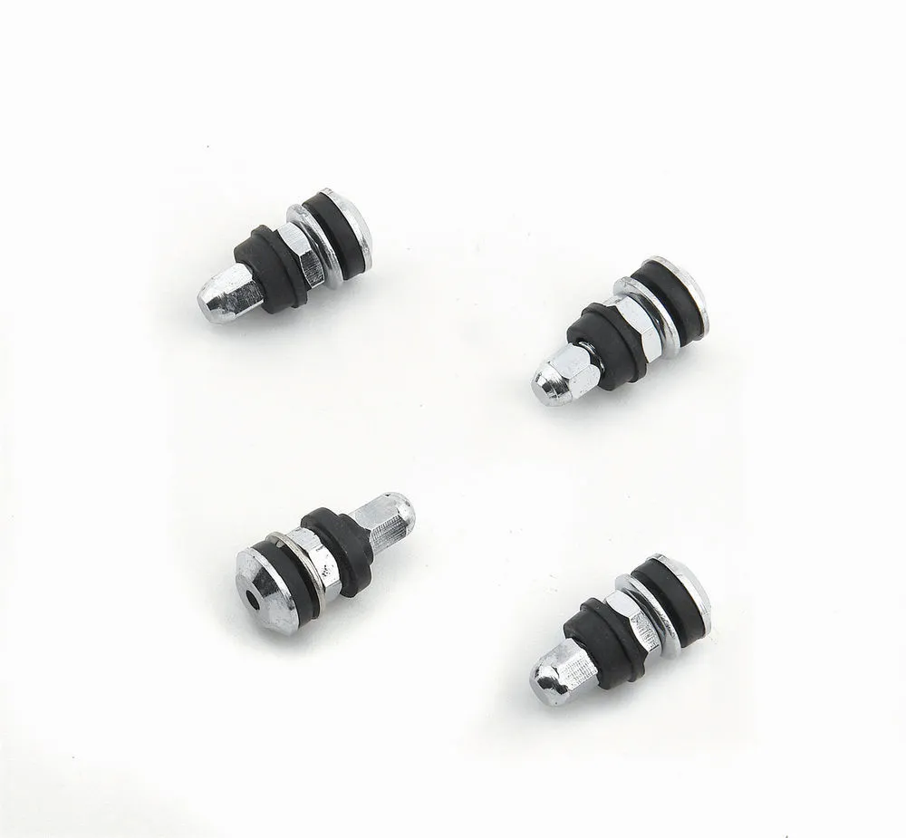 Valve Stem - Bolt-On - Short - Steel - Chrome - Set of 4