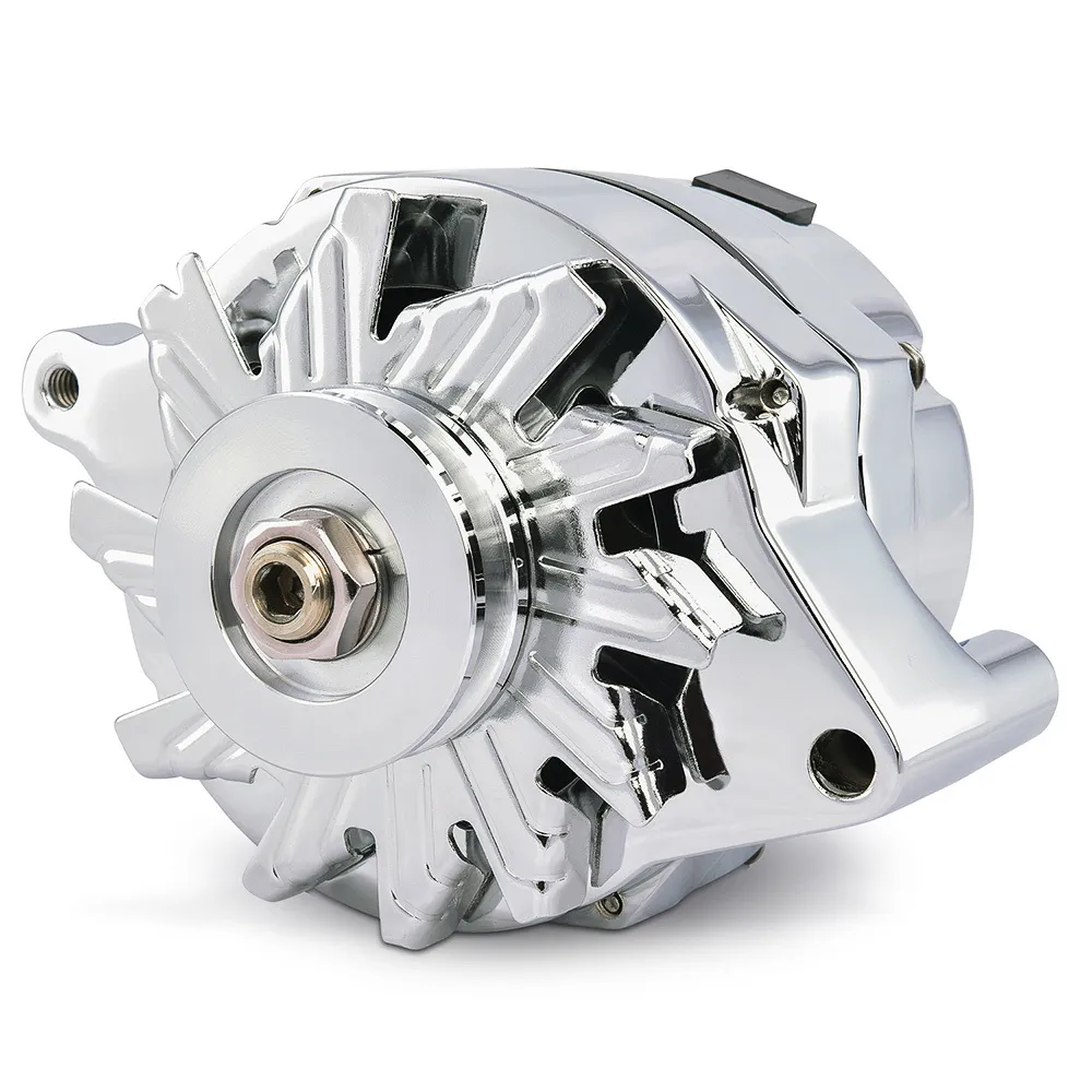 100 AMP Model GM 10si Body Style Chrome Finish Machined Pulley 1-Wire Hook-up w/ Internal Regulator Offset Design for More Oil Pan Clearance 100 percent New Components; Not Reman or Refurbished Sold Individually