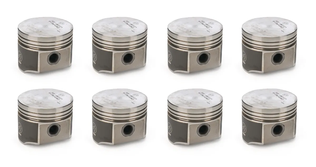 Piston - Speed Pro - Forged - Flat Top - 4.280 in Bore - 1.920 in Compression Height - 5/64 x 5/64 x 3/16 in Ring Grooves - Plus 0.00 cc - Coated Skirt - Mopar B-Series - Set of 8