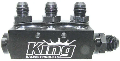 Fuel Block - 8 AN Male Port - 6 AN Female Port - Three 6 AN Male Ports - Aluminum - Black Anodized - Each