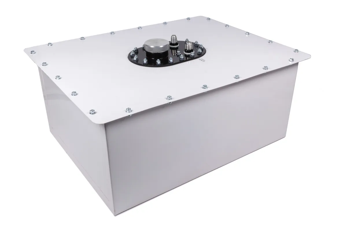 Fuel Cell and Can - Circle Track - 16 gal - 26 x 18.5 x 11.5 in Tall - 10 AN Male Outlet - 8 AN Male Vent - Steel - White Powder Coat - Each
