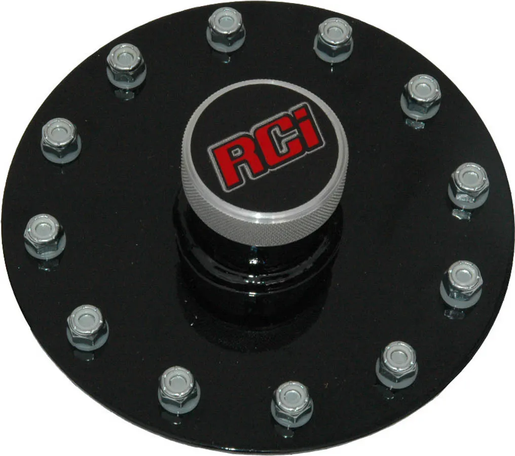 Fuel Cell Filler Plate - Threaded Cap - Straight Neck - Flat Mount - 12-Bolt Flange - Steel - Black Paint - Kit