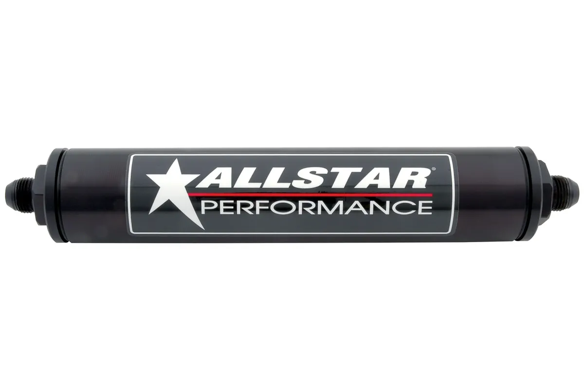 Fuel Filter - In-Line - 10 Micron - Paper Element - 6 AN Male Inlet - 6 AN Male Outlet - Aluminum - Black Anodized - Each