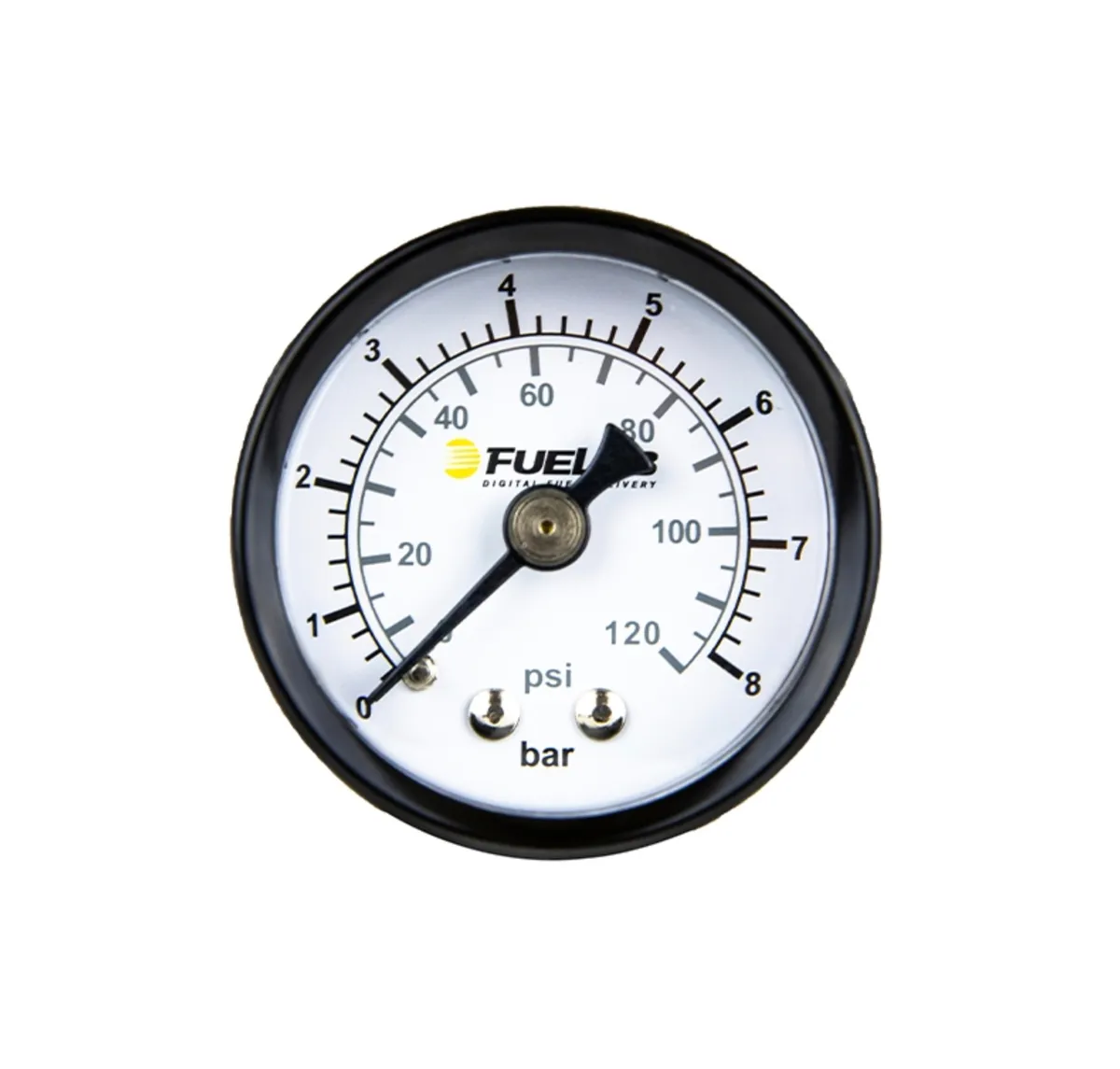 Fuelab 1.5 Inch EFI Fuel Pressure Gauge Dual Bar/Psi Scale. Range: 0-120 Psi. Features: Black Casing 1.5 Inch Diameter White Face, With Black Text 1/8-Npt Direct Mount For Reference Use on Regulators or Fuel Rails With Gauge Ports Not For Use in Passenger or Driver's Compartments
