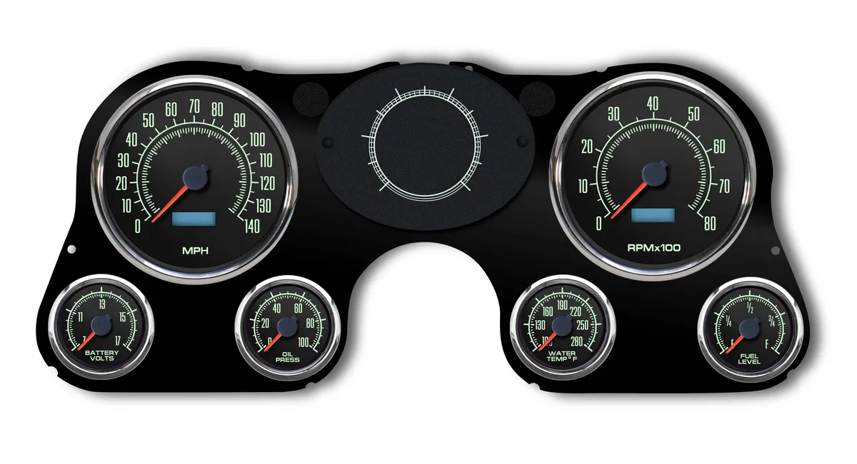 Gauge Kit - 69 Series - Analog - Fuel Level / Oil Pressure / Water Temperature / Voltmeter / Tachometer / Speedometer - Black Face - GM Fullsize Truck 1967-72 - Kit