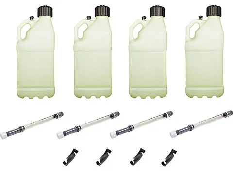 Utility Jug - Motorsports - 5 gal - 9.5 x 9.5 x 23 in tall - O-Ring Seal Cap - Screw-On Vent - Filler Hose / Hose Bender Included - Square - Glow In The Dark - Plastic - White - Kit