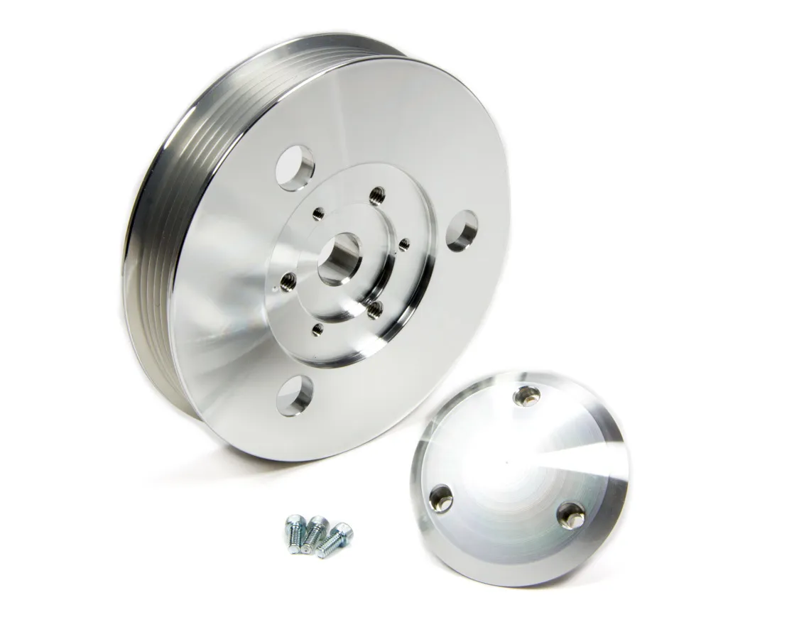 Power Steering Pump Pulley - Serpentine - 6-Rib - Press-On - 5.5 in Diameter - Aluminum - Clear Powder Coat - GM Pumps - Each