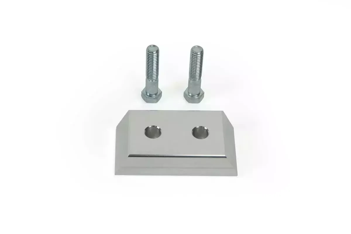 1” Transmission Mount Spacer-Block for 1963-2001 GM RWD applications. Works with all GM two-bolt style transmission mounts. Maintaining proper drivetrain geometry with some transmission swaps will sometimes yield a vertical misalignment between the transmission mount and the transmission crossmember. This is often due to variations in transmissions, motor mounts, etc. G Force developed this spacer block to meet the needs of performance builders establishing proper drivetrain geometry. The spacer bolts to your transmission mount and provides solid contact between the transmission mount and transmission crossmember. This spacer is 1” in height, with the slots measuring 1.50" between the centers. Includes two - 2" 7/16-14 bolts.