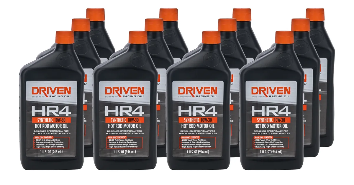 HR4 SAE 10W-30 Synthetic Hot Rod Oil Features storage protection additives that guard against rush and corrosion during winter storage. 10W Multi-grade formula provides excellent start-up protection for flat tappet, overhead and roller cam engines. No ZDDP additives required. Viscosity typical of 10W-30. Driven Racing Oils are formulated for Classic & Racing applications only. This engine oil does NOT MEET any current API or OEM Engine Oil Specifications. These engine oils are not intended for use in vehicles equipped with catalytic converters. For SDS Tech Data Sheet, click here