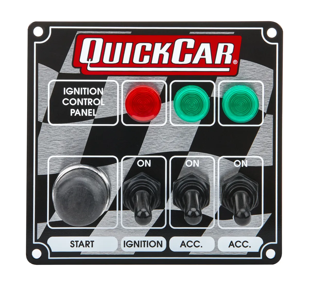 Switch Panel - Dash Mount - 4.625 x 4.375 in - 3 Toggles / 1 Momentary Button - Indicator Light - Checkered - Kit