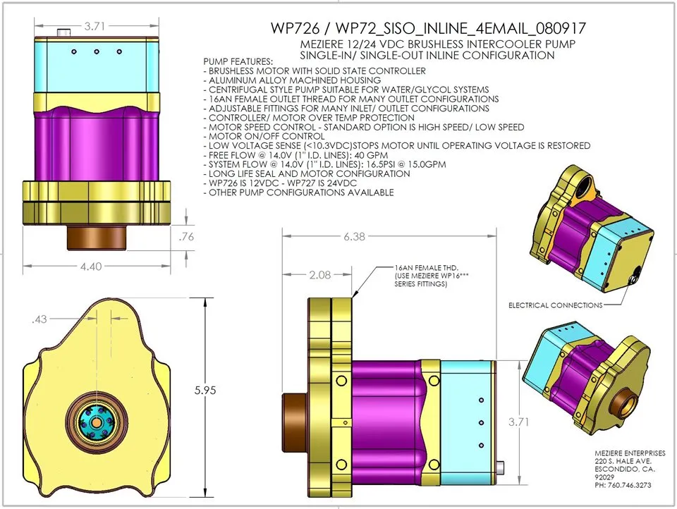 Brushless Intercooler Pump, Inline, 12V, ON/OFF