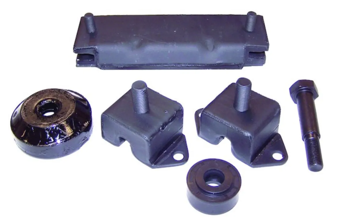 Jeep CJ-2A Interior Accessories 1945-1949 Replacement Parts Engine Motor Mount Kit Steinjäger is pleased to offer this aftermarket accessory which we have procured from an approved Steinjäger supplier. Although not manufactured by us, we make this part available to compliment the Steinjäger product line. Engine Mount Kit for 4-134 L-Head or F-Head Engine. Kit includes 2 Engine Mounts, 1 Transmission Mount, 1 Insulator, 1 Snubber and 1 Bolt.
