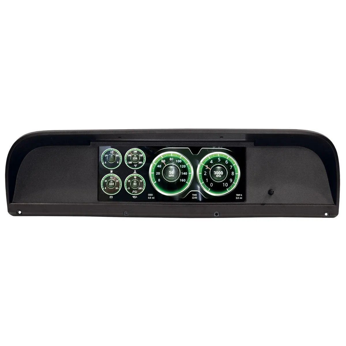 User Selectable Fuel Level Resistance Ranges Designed For OEM And Aftermarket Sending Units,12.3 in. LCD Display with Four User Selectable Screens,Equipped With Removable Air Conditioning Vent Block Off Plates,Includes Universal Wiring Harness/ Sending Units For Water Temperature/ Oil Pressure/ Joystick For Dash Customization,Display Output Is Programmable For Imperial Or Metric Measurements,Direct-Fit Instrumentation Solution For 1967-1972 Ford Truck That Monitors Speedometer,Monitors Speedometer/ Tachometer/ Water Temperature/ Oil Pressure/ Fuel Level/ Volts,Speedometer Easily Calibrates To OEM Or Aftermarket Vehicle,On-Screen Notifications For High Beams And Turn Signals As Well As Audible And Visual Instrument Warnings,Requires No Cutting/Drilling Or Modification To Factory Pieces
