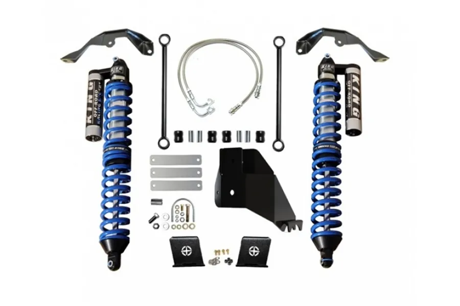 The EVO MFG JT Rear Bolt On Coilover kit is the perfect upgrade for a vehicle with a preexisting lift kit but wants a high performance suspension system specifically prepared for a balance of on and off road comfort and wheel travel. All bracketry is precision laser cut from 3/16” steel and CNC press brake formed for optimum precision and installer fitment. The proprietary shock package built by King Shock Technologies are specifically tailored, tuned and tested for the Jeep Gladiator, giving the vehicle a comfortable feel on the road, making this suspension kit compatible for a daily driver and weekend wheeler. Offroad, the EVO MFG Rear Coilover Suspension Kit provides the ability to wheel comfortably on advanced terrain while keeping the controlled and performance-oriented ride EVO MFG is known for. The EVO MFG Rear Bolt On Coilover Kit offers adjustable ride height without the need for changing, adding or removing any parts, allowing for a varying lift height of roughly 3 inches to 5 inches.