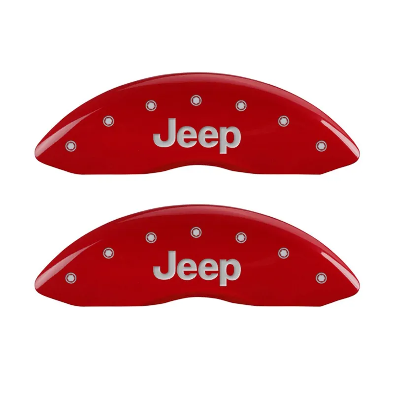 Front Set 2 Caliper Covers Engraved Front Jeep Red Finish Silver Characters 2008-2019 Jeep Compass MGP Caliper Covers