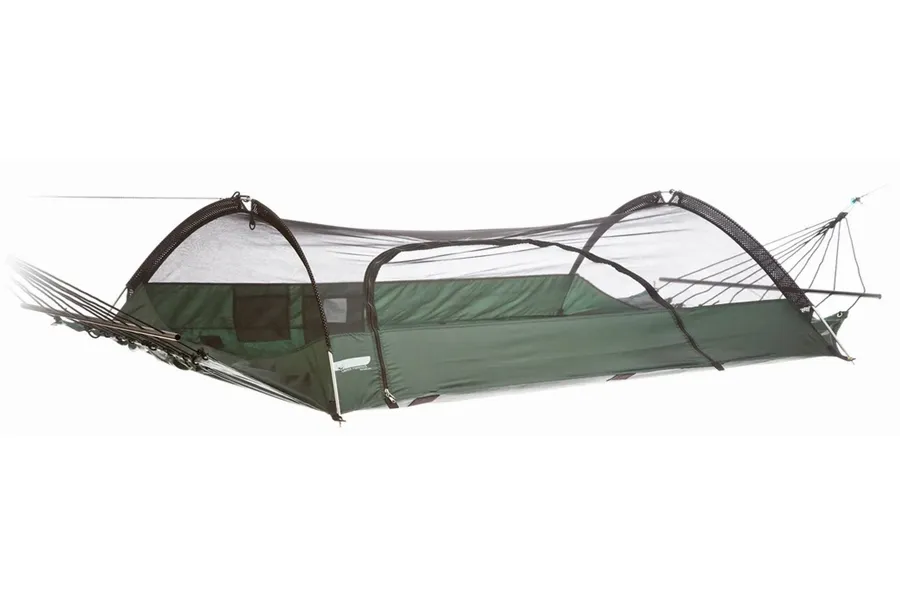 In stock: ships in 1-2 business days Take your Lawson Hammock anywhere with our patented design that allows for suspended hammock camping or staked and secured ground camping. Sleep soundly as Lawson's proprietary spreader bar and arch pole system keeps the hammock flat and more taut than traditional “bunched end” hammocks that turn you into a banana in the middle of the night. Its built-in no-see-um bug net and attachable rainfly means you don’t need to worry about pesky insects or unpredictable weather conditions. Comfortable, waterproof and bug proof - relax in the backyard, sleep in the backcountry, stake it in the desert or hang out by the river with your new favorite tent-hammock hybrid.