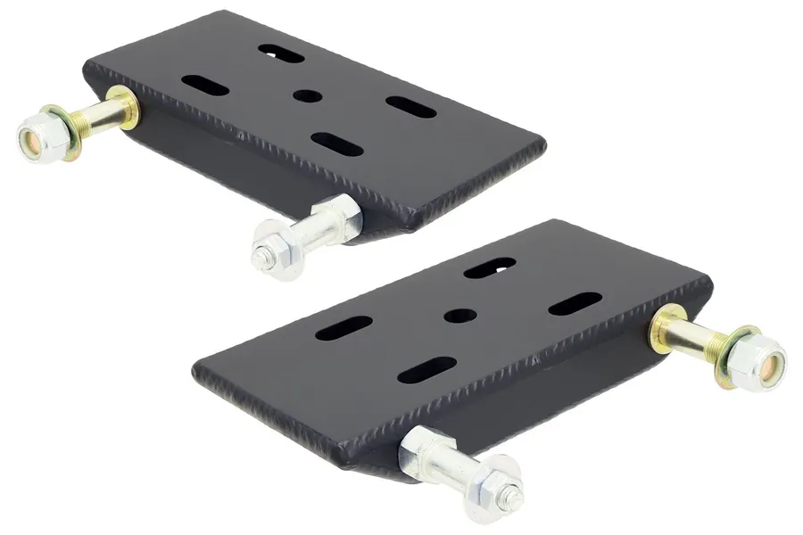 RockJock's Spring Plates are built to withstand the most rugged off road abuse! Plates feature a 5/16 Inch thick steel top plate and a built-on, 1/4 Inch skid plate to protect u-bolts. These heavy duty universal spring plates are designed to be used with 2 1/2 Inch wide springs and come with bolt on, replaceable shock and sway bar mounts. Price listed is for a pair of plates.