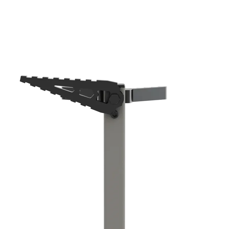 Our 32" Single-Step Climbing Stick is our original climbing stick, and it's still our best seller for a good reason. The aluminum step is tough and rigid, keeping traction and grip when wet or frosty. The pivoting steps rotate to accommodate either foot while climbing, while the self-leveling V-Bracket keeps the climbing stick level on even the gnarliest trees. Sold in packs of four (4) or as a single stick, these 32" climbing sticks should get you anywhere from 15-20 feet up if placed moderately. The bottom step comes equipped with a buckle strap to hold all four together for easy organization and stacking. The aluminum V-Bracket locks into tree bark for a solid, silent hold even in the coldest temperatures. Product Features The pivoting V-Bracket grips to the tree and rotates, allowing the climbing stick to stay level even on crooked trees, keeping you as safe as possible when climbing. Our Frost Coating eliminates shine from otherwise raw aluminum, helping you better blend into the whitetail woods. It also provides texture for better grip in slippery elements. This product is designed, engineered, and certified to exceed the standards set by the Treestand Manufacturer’s Association (TMA) . This product is proudly made in the United States, giving you comfort and confidence in the blue-collar, American quality.