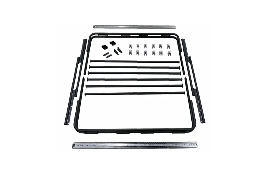 Jeep JK / JL Destroyer 4 Door Sliding Roof Rack option is available to be added on the the Base Roof Rack for the Jeep JK and JL at any time to customize your rack the way you want it! This Sliding Rack option allows you to have full access to the Soft Top for easy up and down operation. Yes, the Destroyer Sliding Rack option will both work with the Sky One-Touch Power Top, the Soft Top in Sunrider position, and Hard Top. This is one of the best features of the LoD Destroyer Roof Rack, no need to unload your gear just to open your top on those hot summer days! The Sliding Rack option also comes with 6 Crossmember Bars as standard equipment. The Sliding Rack driving load capacity is 300 lbs The Sliding Rack static load capacity is 800 lbs Please Note : Sliding Rack requires the Base Rack to work, This is a bolt on option that can be added to the Base Rack at any time!