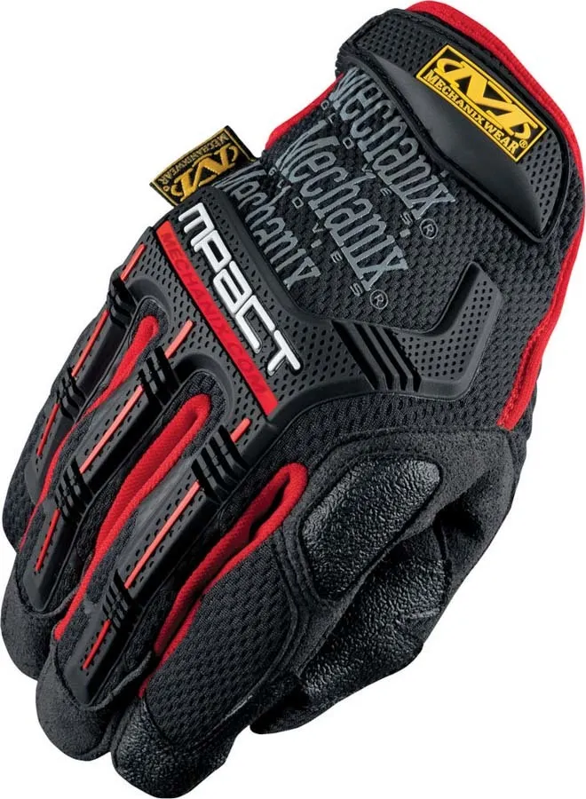 Shop Gloves - M-Pact - Reinforced Fingertips and Knuckles - Padded Palm - Hook and Loop Closure - Black / Red - Large - Pair
