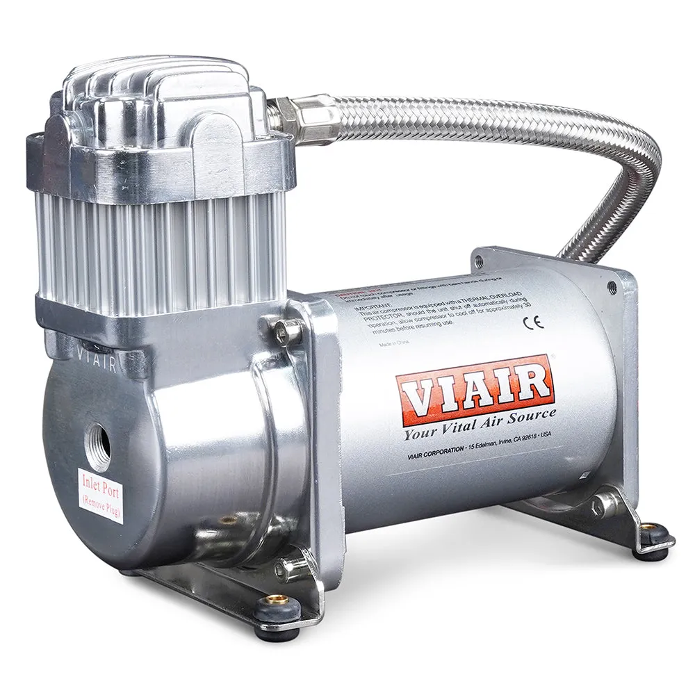 VIAIR’s Medium Duty Onboard Air System is a pre-packaged compressed air solution that provides a 33% duty cycle 325C compressor, 2.5 gallon air tank, and all components needed to install basic vehicle-based pneumatics.