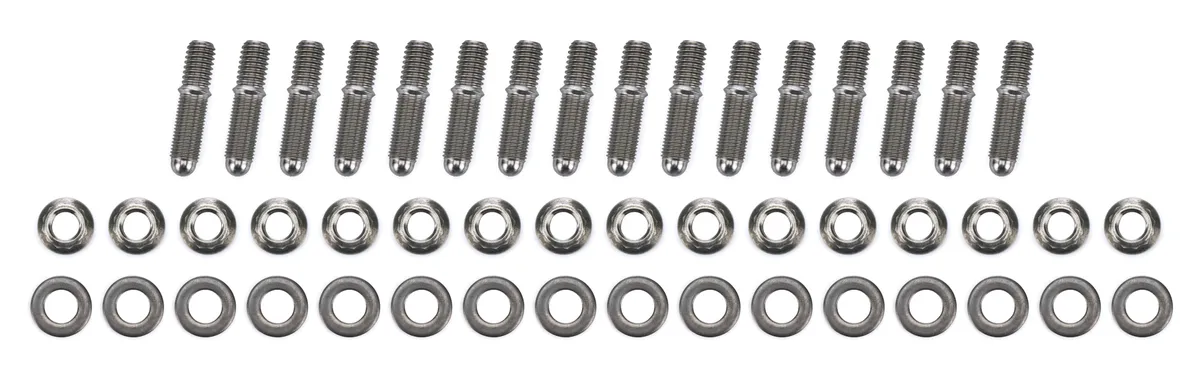 Header Stud - 8 mm x 1.25 Thread - 12 Point Nuts - Steel - Stainless - Natural - Mopar 426 Hemi - Set of 16