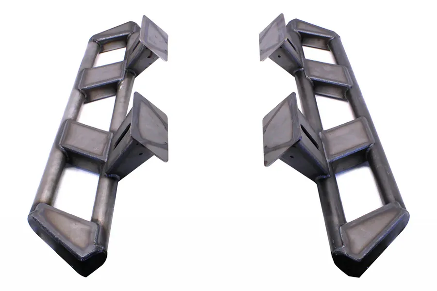 Looking for rockers guards that will hold up to whatever you throw at them? The Motobilt Jeep JL 2 door 2018-Current frame mounted rocker guards provide the most protection to your Jeep JL 2 door body. Unlike other rocker guard protection that is bolted to the body and body mounts, these rock sliders are welded directly to the frame acting as a barrier between the jeep body and trail obstacles. When you contact a trail obstacle, the forces are transferred directly to the frame instead of the body of your vehicle. They are so tough you can use the rock rail as a jack point to lift your jeep up. The frame mounts are constructed of 3/16” thick laser cut steel plate CNC formed to add strength. The frame mounts are essentially formed boxes that spread the load out on the frame as well as the tube attached to them. The mounts provide 4 times the surface area at the frame versus tubing mounts and gussets some other manufacturers offer. On the tubing side of the frame mount the surface area is spread out to 3 times what tube to tube would offer. The Motobilt Frame Mounted Rockers are the ultimate in strength and durability. The tube slider portion of the JL frame mounted rocker guards is 2” DOM steel tubing. The end caps and center bracing are fabricated like the frame mounts from heavy duty 3/16” thick laser cut and formed steel plate. The rockers are shipped completely welded. They are shipped bare steel. Installing them will require welding and painting. If you opt to powder coat them test fit and know where you are going to put them to reduce chances of scratching them. Once powder coated you will need to grind the powder off of the edges that weld to the frame. After welding simply paint this area. We do not offer powder coating. If you intend on taking your Jeep JL on any extreme trail, you will need extreme body protection and these rock rails are a must have for ultimate protection.