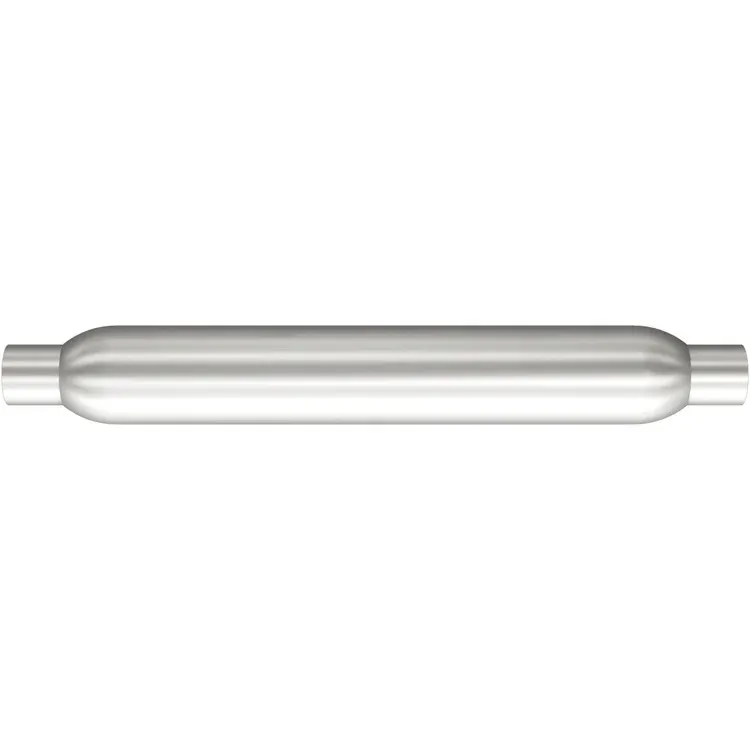 - Glass Pack - 2.5 in Center Inlet - 2.5 in Center Outlet - 26 x 4 in Round Body - 30 in Long