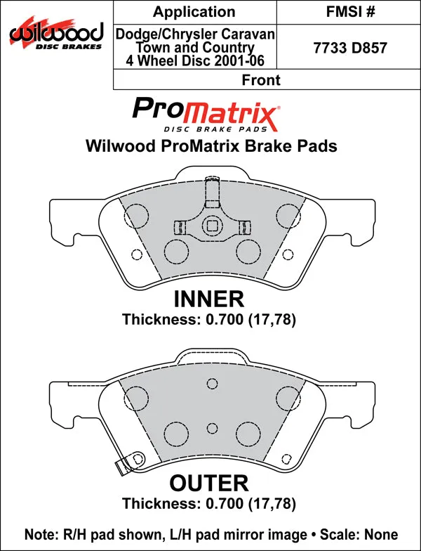 Wilwood Brake Pad part number 150-D0857K has a pad type #D857 with compound PM